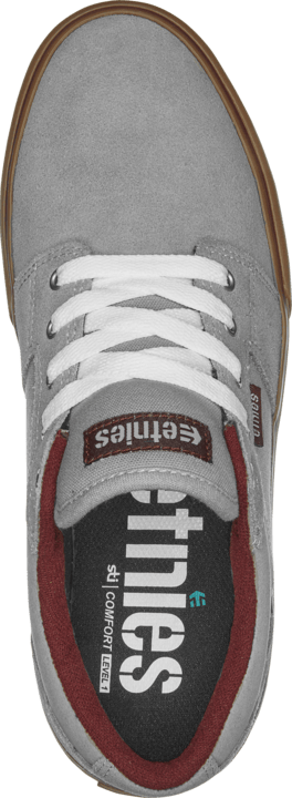 The Barge LS is a revamped low-top skate shoe with a slimmer profile and improved support. etnies added a hefty armored collar and raised heel height which transformed the older Barge shape into a narrow, modern design. It features a Foam Lite 1 insole, one-piece toe vamp, and single-wrap vulcanized construction for boardfeel. Suede and canvas paneling plus a padded tongue provide a balance of durability and comfort in this classic vulc model.