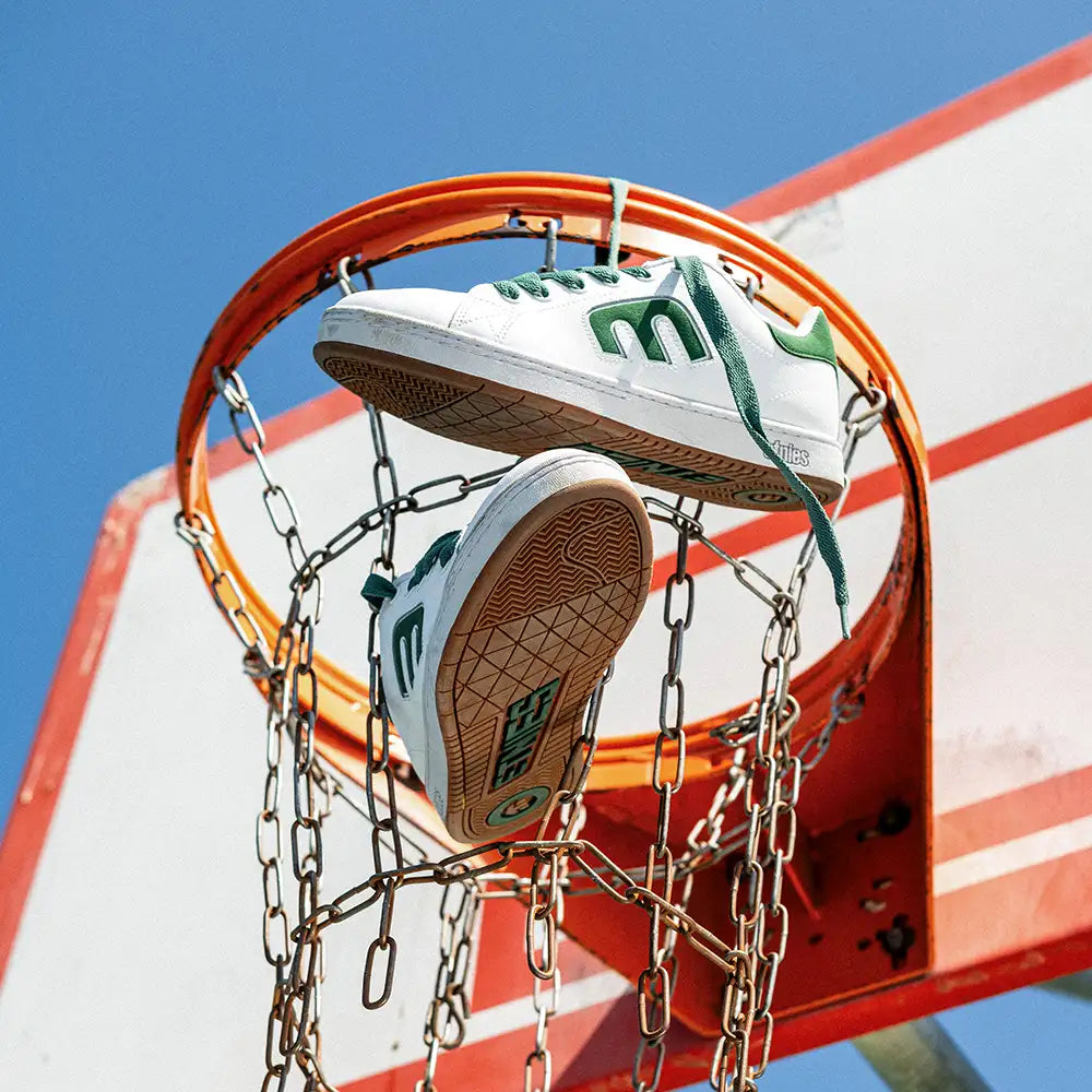 The Callicut is a reissued skate classic from etnies’ Icon Collection - famous for its chunky silhouette and large “E” logo. This low-top features a suede upper with a padded tongue and collar, STI Level 1 insole, and a 400 NBS rubber outsole. Its design stays true to the early-2000s original, complete with breathable mesh tongue and the flexible tread pattern that made it a go-to for both skaters and the “mall skate” crowd.