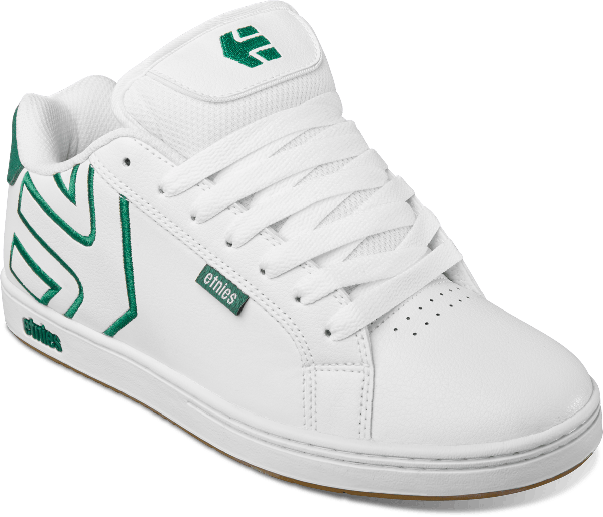 The Fader is a long-running etnies style known for its bold logo and comfort. This cupsole shoe has a trademark “E” logo integrated into the heel area and a 300 NBS rubber outsole. It uses egg-crate midsole construction for cushioning and features a die-cut EVA insole, plus a padded tongue and collar for protection. The Fader’s durable suede upper and timeless puffy silhouette make it a staple for those seeking classic skate vibes with reliable support.