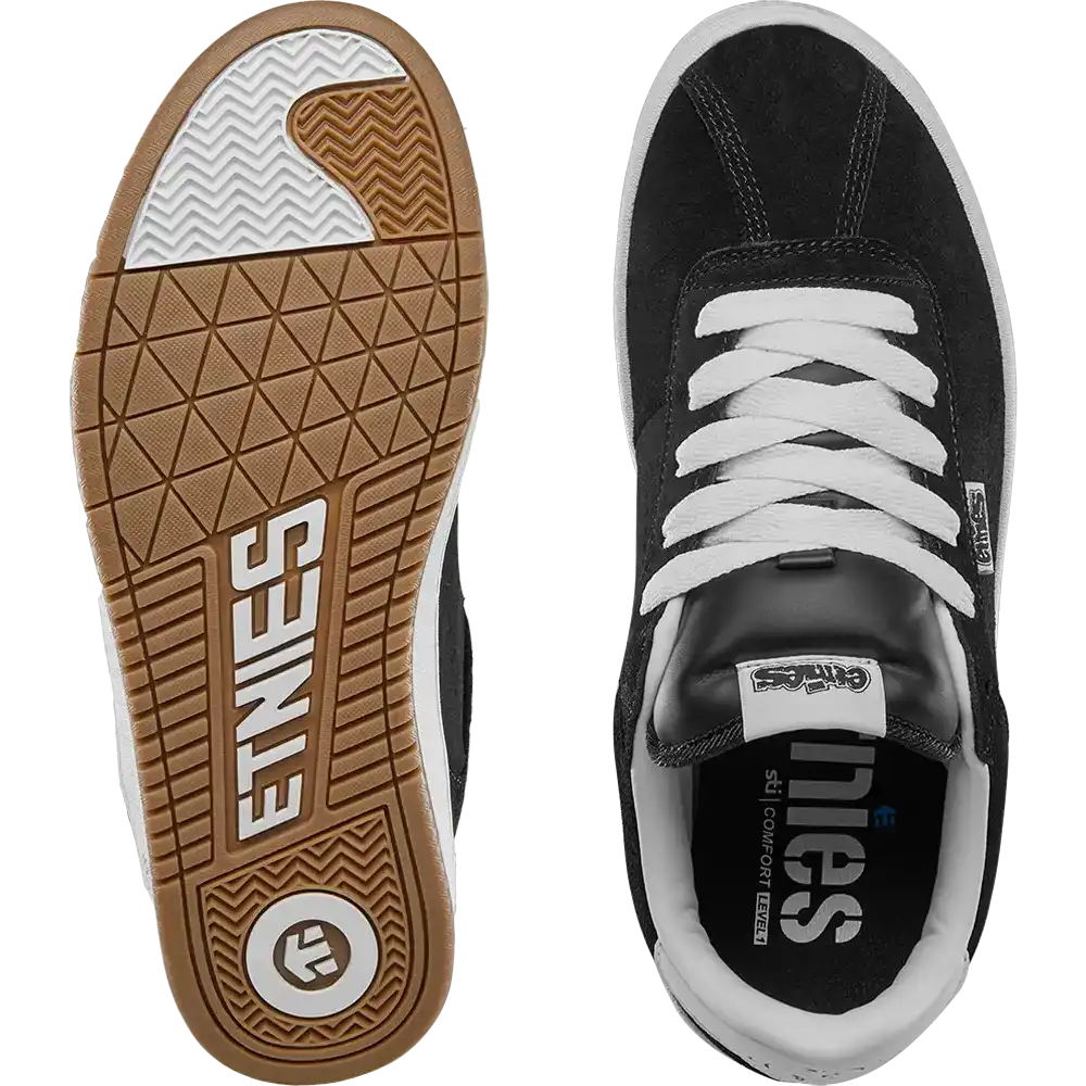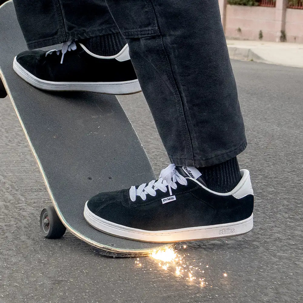 The Scam is an OG 1993 reissue that brings back the low-top that helped redefine skate shoes back in that era. It features a mid-puff foam padded tongue and collar and a layered suede upper with triple stitching in key areas. Underneath is a cupsole with the classic 90s etnies tread pattern – seen in countless videos and photos. Notable details: it has the small rubber etnies heel logo, and comes with extra laces and even a retro-style shoebox. The Scam’s durable build (molded TPR ollie guard, etc.) made it an instant team favorite back in the day , and its reissue stays true to form, delivering “a true skate classic!” with modern comfort tucked in.