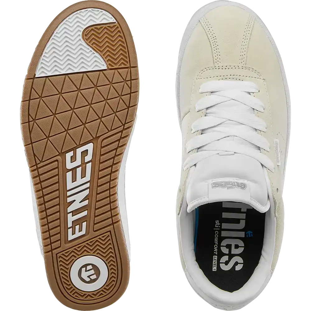 The Scam is an OG 1993 reissue that brings back the low-top that helped redefine skate shoes back in that era. It features a mid-puff foam padded tongue and collar and a layered suede upper with triple stitching in key areas. Underneath is a cupsole with the classic 90s etnies tread pattern – seen in countless videos and photos. Notable details: it has the small rubber etnies heel logo, and comes with extra laces and even a retro-style shoebox. The Scam’s durable build (molded TPR ollie guard, etc.) made it an instant team favorite back in the day , and its reissue stays true to form, delivering “a true skate classic!” with modern comfort tucked in.